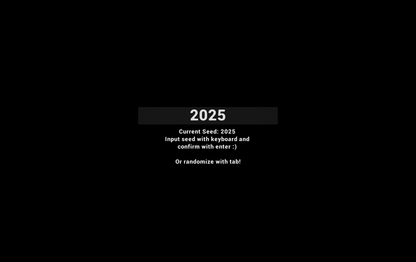 - TAB: Input Seed (Keyboard only) (tab again to randomize seed)